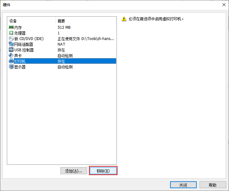 第六步:配置硬件,通过自定义硬件可以配置该虚拟机的内存、CPU、网卡、声卡、打印机等,不需要的可以移除,安装完虚拟系统后也是可以配置硬件信息的。